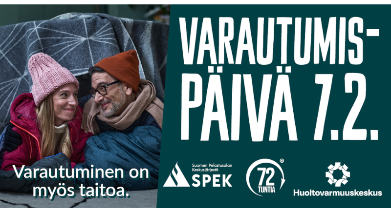Valtakunnallista Varautumispäivää vietetään lauantaina 7.2.2026. Tämän vuoden teemana on varautumistaidot. Viranomaisten ja järjestöjen yhteinen suositus on, että jokaisen kotitalouden tulisi olla varautunut vähintään 72 tunnin ajaksi mahdollisiin häiriötilanteisiin.